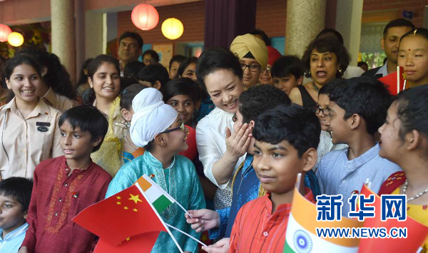 ????參觀結(jié)束時(shí),彭麗媛向?qū)W校贈(zèng)送了中文圖書(shū)、教學(xué)光碟和文具,同師生親切合影,擁抱、親吻孩子們。彭麗媛說(shuō),我會(huì)記住孩子們的笑容。歡迎大家多到中國(guó)走走看看,增進(jìn)彼此了解,把中印友好永遠(yuǎn)傳承下去。