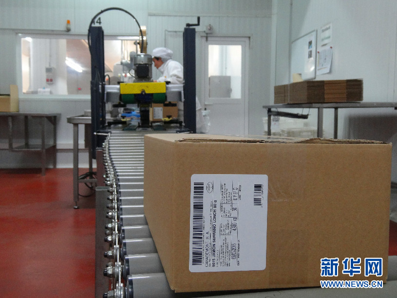 裝滿切片火腿的紙盒。我們可以看到,處于食品加工安全和衛生的考慮,切片和裝盒是在兩個不同的房間里。
