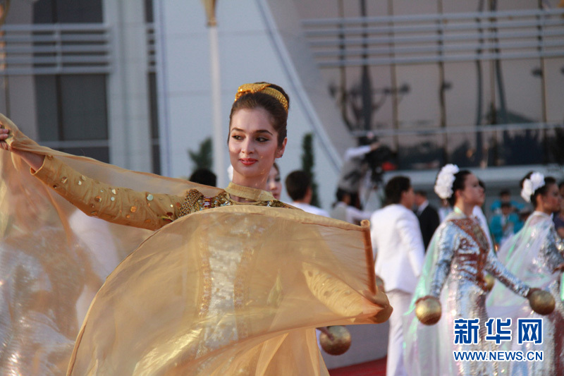 身著節日盛裝的土庫曼斯坦美女在跳舞 記者 盧敬利攝
