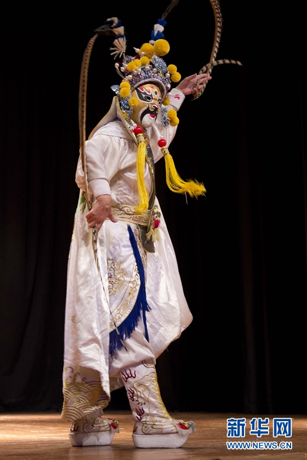 來自中南民族大學(xué)的演員在臺上表演。新華網(wǎng)發(fā) Xesco攝