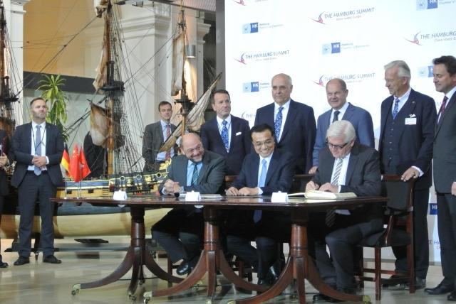 “我很贊賞漢堡峰會(huì)用了這樣一個(gè)主題——China meets Europe. 中國和歐洲相遇的結(jié)果是什么?是幸運(yùn)。”克強(qiáng)總理說。