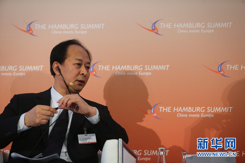??? 10月11日,在德國(guó)漢堡舉行的中歐論壇漢堡峰會(huì)上,鞍鋼集團(tuán)公司總經(jīng)理張曉剛博士發(fā)言。中歐論壇漢堡峰會(huì)第六屆會(huì)議11日在德國(guó)漢堡閉幕。本屆峰會(huì)以“中國(guó)與歐洲相遇”為主題。來(lái)自中歐政治、經(jīng)濟(jì)和學(xué)術(shù)界的500多位代表聚集在一起,探討中歐經(jīng)貿(mào)合作未來(lái)趨勢(shì)、中國(guó)經(jīng)濟(jì)的綠色發(fā)展等重要議題。新華社記者張帆攝