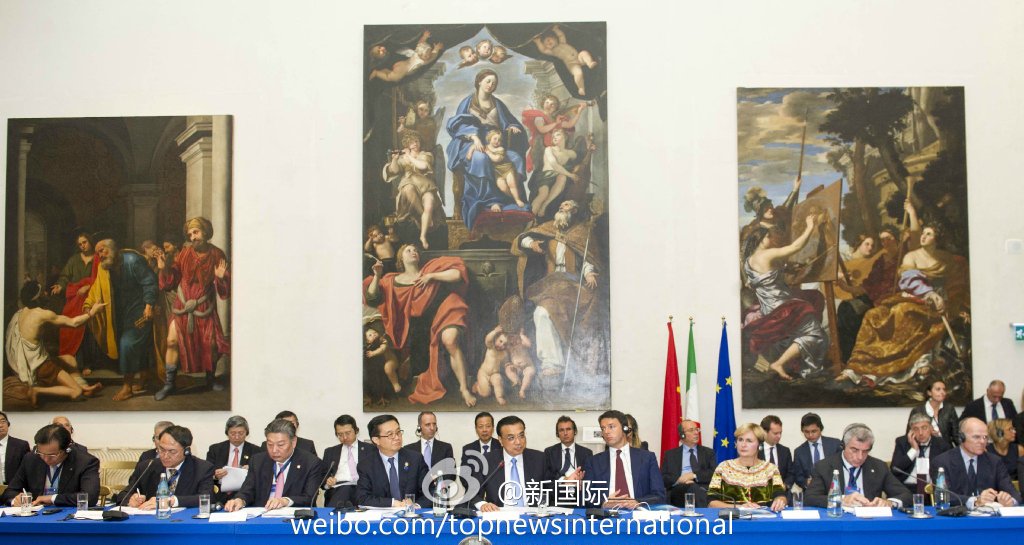 ????新華網北京10月15日電 據新華社“新國際”微博報道,中意兩國總理14日在羅馬共見兩國企業家代表,李克強說,企業界是推動兩國合作的主體和生力軍。當前中意都進入了依靠創新驅動的時代,這不僅需要科技創新,而且需要人文精神。希望兩國企業家爭做現代馬可·波羅,發揮互補優勢,推動企業間合作邁上創新的路程。