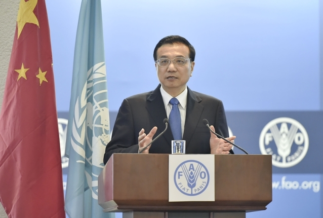 ????面對聯合國三大糧農機構的數百名代表,克強總理發表演講。從中國元素、中國經驗到中國聲音,克強總理對糧農組織的訪問讓世界看到了應對饑餓和貧困的中國希望。