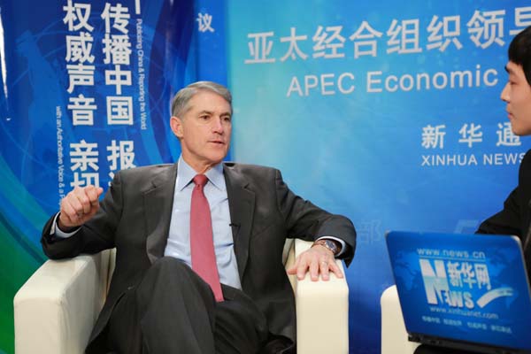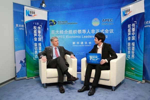 ????新華網北京11月11日電(記者 向博)美國卡特彼勒公司總裁芮德華9日在出席亞太經合組織(APEC)工商領導人峰會期間接受新華網記者專訪,暢談基礎建設和工程機械行業在亞太地區的發展以及中國市場布局等話題。