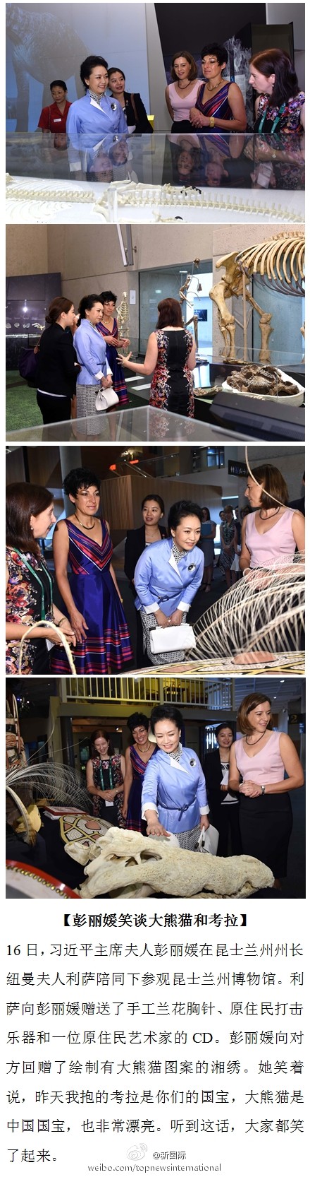 彭麗媛參觀澳大利亞昆士蘭州博物館 笑談大熊貓和考拉
