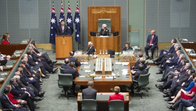 11月17日,國家主席習近平在澳大利亞聯邦議會發表題為《攜手追尋中澳發展夢想 并肩實現地區繁榮穩定》的重要演講。新華社記者謝環馳攝