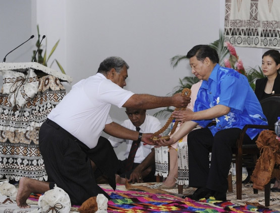 ????習(xí)主席在開場白中,首先就提到了東道主對中國代表團(tuán)的熱情接待和周到安排:“昨天下飛機(jī),歡迎儀式很隆重。接著,又安排了具有斐濟(jì)民族特色的歡迎儀式和盛大的歡迎晚宴。我再一次對總理先生和斐濟(jì)政府表示感謝。”