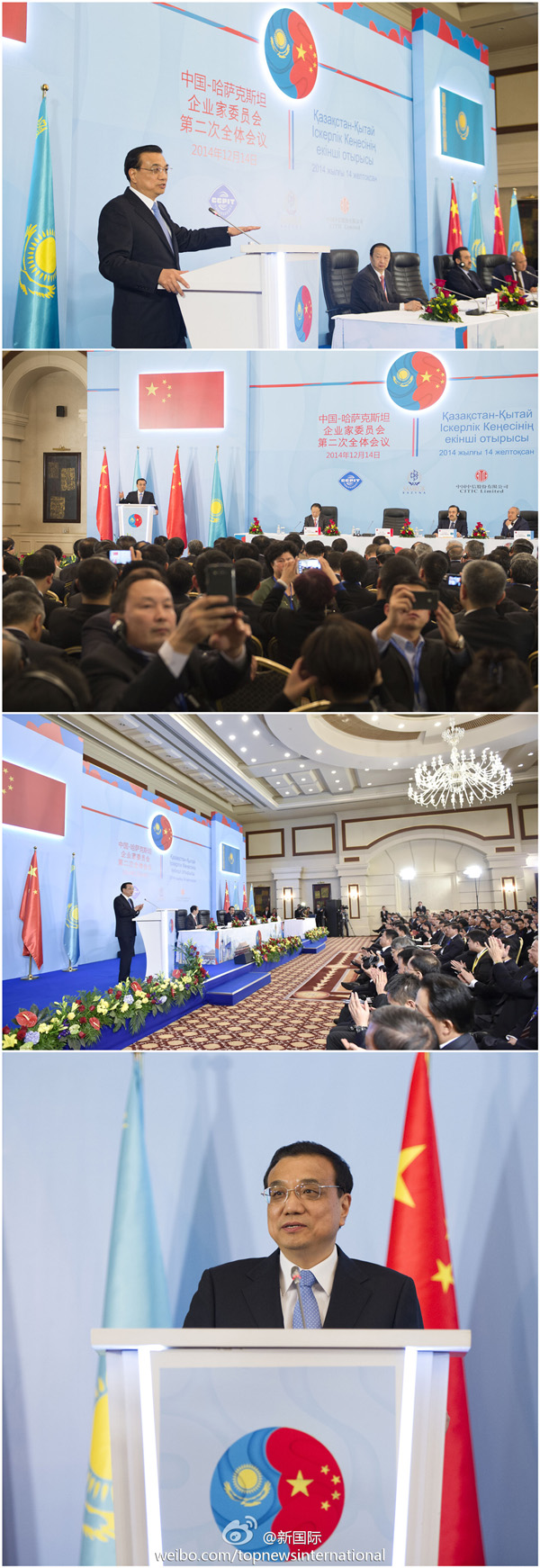 ????新華網(wǎng)北京12月15日電? 據(jù)新華社“新國際”微博報道,李克強總理14日在中哈企業(yè)家委員會第二次會議上說,中方愿參與哈薩克斯坦政府新近提出的“光明大道”計劃。這一新經(jīng)濟計劃的重點是發(fā)展基礎設施,需要鋼鐵、水泥、平板玻璃、電廠等,中國在這些方面有很強的裝備制造能力,中方愿支持哈方,實現(xiàn)互利共贏。
