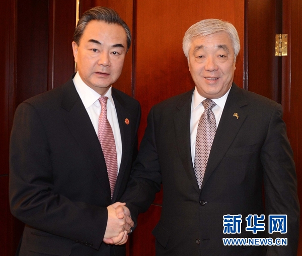 ??? 12月15日,陪同李克強總理訪問哈薩克斯坦的外交部長王毅應約會見哈薩克斯坦外長伊德里索夫。 新華社記者 沙達提 攝