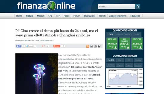 意大利財經在線網站1月20日發表文章稱雖然2014年中國的國內生產總值是24年來最低,但工業生產、零售業和股市都釋放出健康和積極的信號。