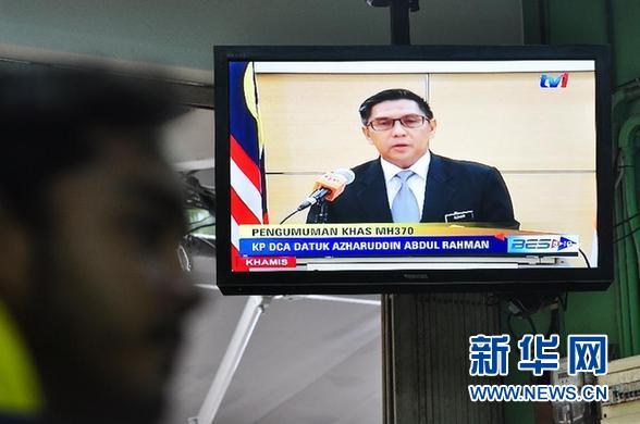????1月29日,在馬來西亞吉隆坡,電視直播馬來西亞民航局局長愛茲哈爾丁發(fā)表聲明。馬來西亞民航局當日宣布,馬來西亞航空公司MH370航班失事,推定機上全部239名乘客及機組成員已遇難。 新華社發(fā)(張紋綜攝)