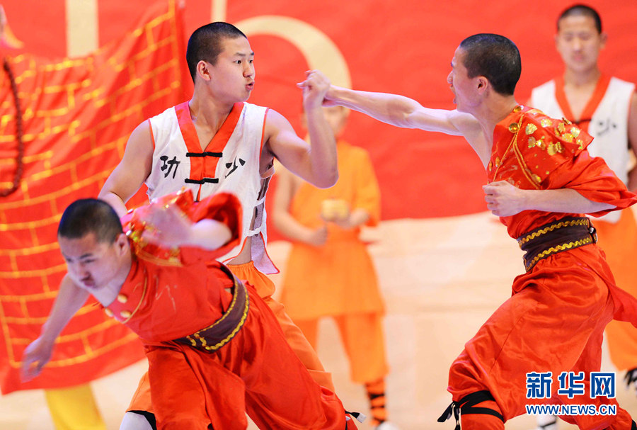 2月4日晚,在烏茲別克斯坦首都塔什干突厥宮,藝術家在表演中國武術和舞蹈。新華網記者 沙達提 攝