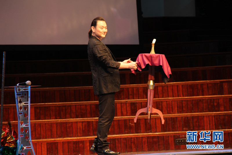 ??????? 2月25日,由中國國務(wù)院僑辦和中國海外交流協(xié)會聯(lián)合主辦的“文化中國·四海同春”在悉尼舉辦大洋洲團的首場演出,歌手成方圓、中國好聲音學(xué)員李維、周深等國內(nèi)知名表演者和中澳藝術(shù)團體為當(dāng)?shù)厝A僑華人送來新春祝福。圖為中國雜技團著名青年魔術(shù)師李寧表演魔術(shù)。新華社記者趙小娜攝