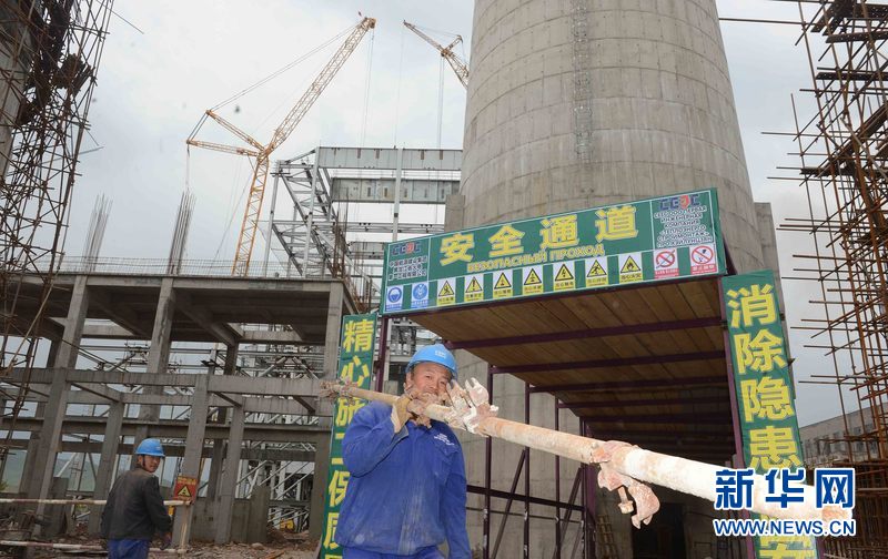 ?5月1日,來自中國能建集團黑龍江省火電第一工程有限公司的工人在哈爾濱電氣國際工程公司承建的安格連熱電廠改造項目現場施工。沙達提 攝