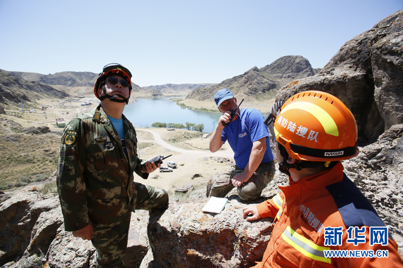 6月3日,代表中國參加上合組織國際救援聯合演練的新疆消防總隊隊員在哈薩克斯坦阿拉木圖州塔姆卡壘塔斯景區的哈內務部緊急情況委員會教練基地“巖石城-阿斯塔納”參加演練。新華社記者沙達提攝