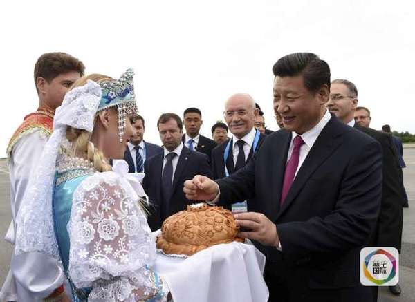 7月8日,國家主席習(xí)近平乘坐專機(jī)抵達(dá)烏法,應(yīng)俄羅斯聯(lián)邦總統(tǒng)普京邀請,出席金磚國家領(lǐng)導(dǎo)人第七次會(huì)晤和上海合作組織成員國元首理事會(huì)第十五次會(huì)議。這是在烏法國際機(jī)場,身穿俄羅斯民族服飾的青年按當(dāng)?shù)赜淤F賓的傳統(tǒng),向習(xí)近平敬獻(xiàn)面包和鹽。習(xí)近平掰下一小塊面包,蘸鹽品嘗。新華社記者饒愛民攝