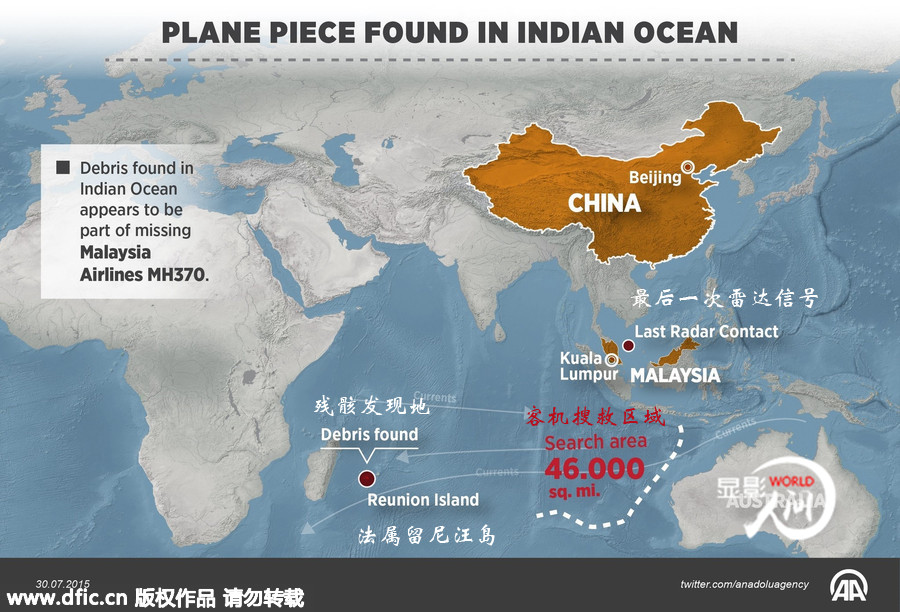 8月2日,馬來西亞交通部發表官方聲明,證實此前在法屬留尼汪島發現的飛機機翼殘骸屬波音777客機。而2014年3月失蹤的馬航MH370航班正是波音777機型。