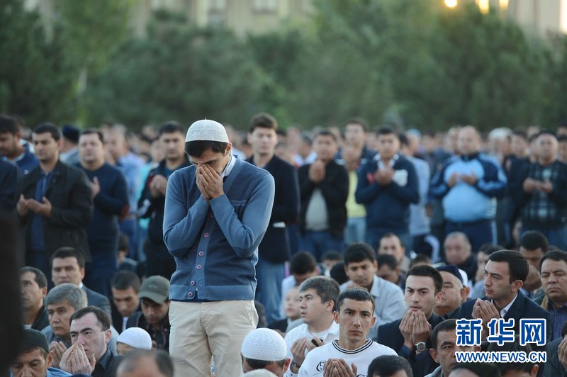 9月24日,在烏茲別克斯坦首都塔什干哈斯特·伊瑪姆建筑群清真寺廣場,人們參加古爾邦節禮拜。當天,烏茲別克斯坦各地慶祝伊斯蘭教傳統節日古爾邦節。“古爾邦節”亦稱“宰牲節”,是伊斯蘭教三大節日之一。 新華社記者沙達提 攝