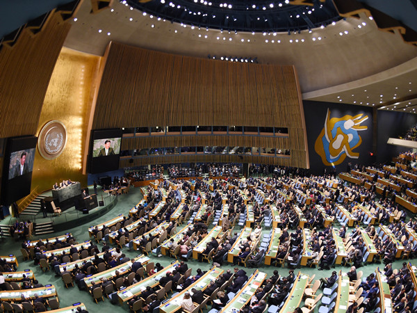 28日,習主席登上聯大一般性辯論的講壇,發表題為《攜手構建合作共贏新伙伴 同心打造人類命運共同體》的重要講話。