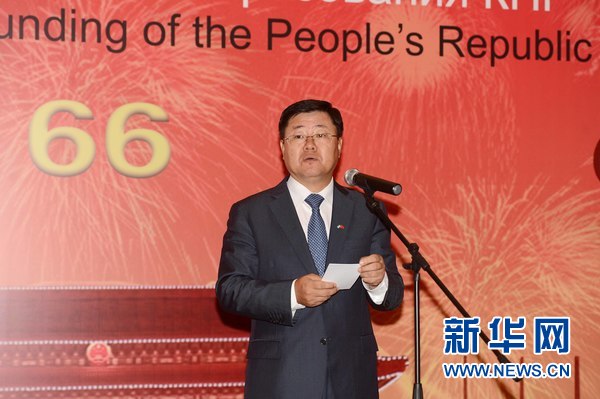 新華網塔什干9月30日電(記者沙達提)中國駐烏茲別克斯坦使館30晚在塔什干隆重舉行國慶66周年招待會,烏第一副總理兼財政部長阿濟莫夫、最高會議立法院(下院)副議長凱特莫諾夫、副總檢察長哈里莫夫、國防部第一副部長兼烏軍總參謀長諾爾馬托夫、外交部副部長法濟洛夫、內務部副部長諾爾馬托夫、對外經貿部副部長圖列甘諾夫及烏各界友好人士、外國駐烏使節、在烏中資機構和華人華僑代表等400余人出席。