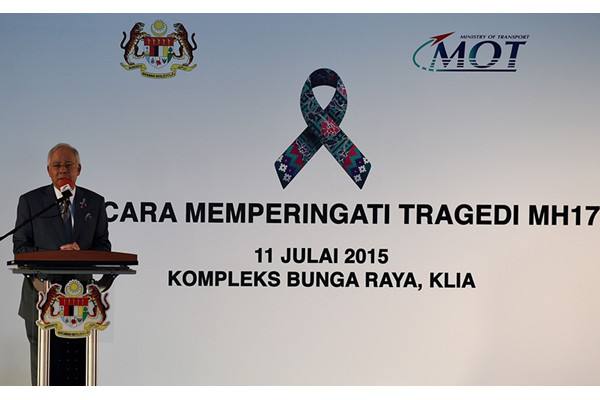 ↑2015年7月11日,馬來西亞總理納吉布在馬航MH17失事1周年紀(jì)念儀式上講話。