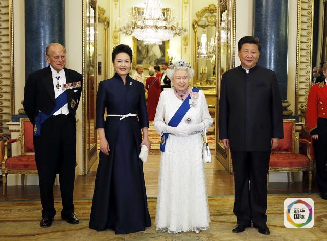 國(guó)家主席習(xí)近平和夫人彭麗媛在倫敦白金漢宮出席英國(guó)女王伊麗莎白二世舉行的歡迎晚宴。(鞠鵬攝)