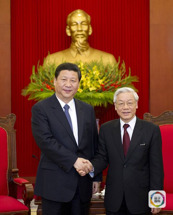 2011年12月21日,時(shí)任中共中央政治局常委、國(guó)家副主席習(xí)近平在河內(nèi)會(huì)見越共中央總書記阮富仲。