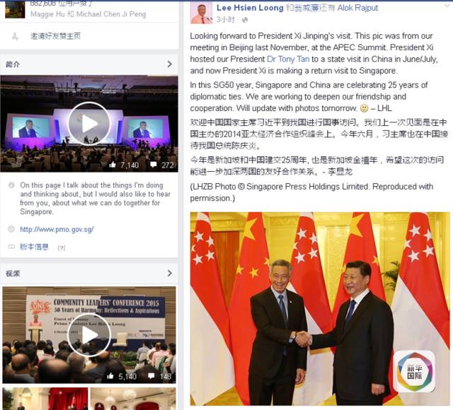 李顯龍還用中英文寫道,“今年六月,習(xí)主席也在中國接待我國總統(tǒng)陳慶炎。今年是新加坡和中國建交25周年,也是新加坡金禧年,希望這次的訪問能進(jìn)一步加深兩國的友好合作關(guān)系。”