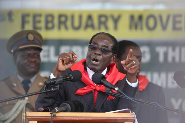 2015年2月28日,總統穆加貝在民眾為他舉行的91歲生日慶典上講話。新華社發(費列蒙攝)