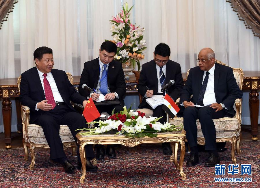 ??? 1月21日,國家主席習近平在開羅會見埃及議長阿里。新華社記者 饒愛民 攝