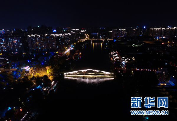 航拍杭州西湖文化廣場附近的京杭大運河夜景(5月4日攝)。杭州自古多橋。斷橋、長橋、錢塘江大橋、復興大橋……古樸文雅輝映現代氣派,透出這座城市融匯古今、靈動開放的底蘊。舉世矚目的二十國集團(G20)領導人第十一次峰會將在這里舉行。有趣的是,這次峰會的會標,也是一座橋——一座由20個成員搭起的“橋”。這會是一座怎樣的橋?它能否緩解當前全球經貿河道上的種種淤塞?它能否跨越發達國家和發展中國家之間的溝溝壑壑? 全球在期待,中國在行動。新華社記者黃宗治攝