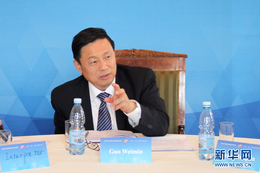 ??? 6月14日,在波蘭首都華沙召開的中國—波蘭媒體座談會上,中國國務(wù)院新聞辦公室副主任郭衛(wèi)民同與會的中波媒體代表進行交流。當天,由中國國務(wù)院新聞辦公室主辦的中國—波蘭媒體座談會在波蘭首都華沙召開,包括新華社、中央電視臺、中國國際廣播電臺、中國日報社、新華網(wǎng)、波蘭通訊社、波蘭國家電視臺、波蘭《共和國報》、波蘭廣播電臺和波蘭亞洲研究中心等中波媒體代表參加了此次座談會,雙方代表就中波兩國媒體合作和“一帶一路”建設(shè)等議題進行了熱烈的交流和討論。新華網(wǎng)記者 陳序 攝