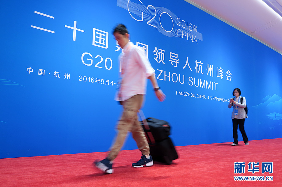9月4日上午,金磚國家領(lǐng)導人非正式會晤在浙江杭州舉行。當日,G20峰會新聞中心一派繁忙景象。新華網(wǎng)記者 陳競超 攝