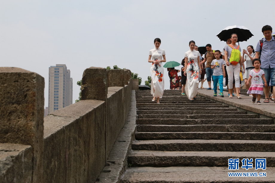 ????拱宸橋面上徐徐走來的姑娘是本次G20杭州峰會的志愿者。栩栩如生的杭州刺繡,搭配姑娘優雅大方的儀態,加之中英文雙語的精彩講解,讓中外游客印象深刻。新華網 翁 璟 攝
