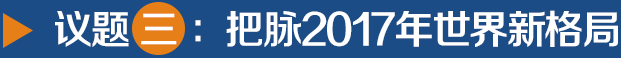• 2016年的“黑天鵝”事件——英國脫歐、特朗普當(dāng)選美國總統(tǒng)等,將在2017年繼續(xù)發(fā)酵。特朗普的美國優(yōu)先政策等必將深刻影響未來一個(gè)時(shí)期的國家間關(guān)系和世界格局。中國將如何應(yīng)對(duì)呢?一是保持淡定,沉著應(yīng)對(duì),始終堅(jiān)持以經(jīng)濟(jì)建設(shè)為中心;二是守住底線,不惹事,但也不怕事。我們的底線是在臺(tái)灣問題上要維護(hù)國家的統(tǒng)一大業(yè),在島嶼主權(quán)問題上絕對(duì)不能丟失一個(gè)島嶼。[詳情]