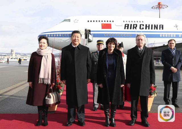 1月15日,國(guó)家主席習(xí)近平乘專機(jī)抵達(dá)蘇黎世,開始對(duì)瑞士聯(lián)邦進(jìn)行國(guó)事訪問(wèn)。這是瑞士聯(lián)邦主席洛伊特哈德在機(jī)場(chǎng)為習(xí)近平和夫人彭麗媛舉行隆重歡迎儀式。(新華社記者蘭紅光攝)
