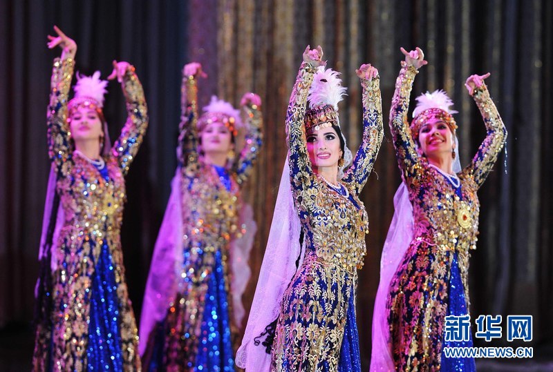 1月18日晚,烏茲別克斯坦首都塔什干人民友誼宮,烏茲別克斯坦舞蹈演員在表演中烏傳統舞蹈。