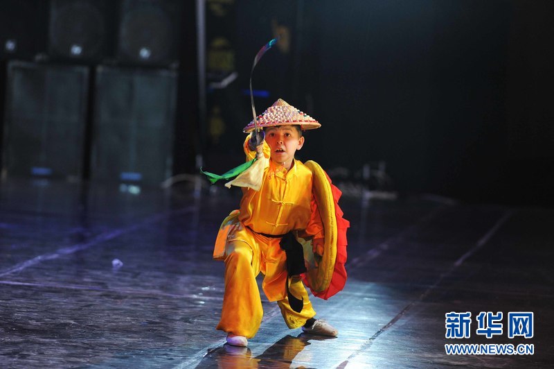 1月18日晚,烏茲別克斯坦首都塔什干人民友誼宮,烏茲別克斯坦中華民族文化中心武術(shù)隊(duì)隊(duì)員在表演武術(shù)。新華網(wǎng)記者 沙達(dá)提 攝