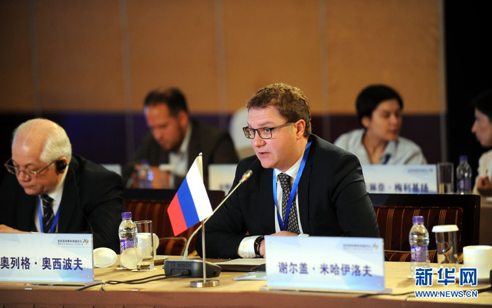 金磚國家媒體高端論壇開幕式6月8日在北京舉行。圖為論壇共同主席、俄羅斯衛(wèi)星通訊社第一副總編輯奧列格·奧西波夫發(fā)表演講。 新華網(wǎng) 孫韜 攝