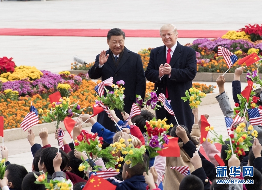 新華社北京11月9日電(記者許可)國家主席習(xí)近平9日上午在人民大會堂東門外廣場舉行歡迎儀式,歡迎美利堅合眾國總統(tǒng)唐納德·特朗普對中國進(jìn)行國事訪問。