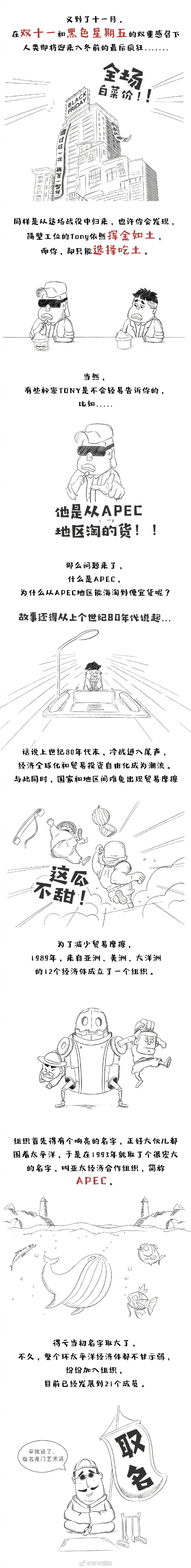 亞太經(jīng)合組織(APEC)第二十五次領(lǐng)導(dǎo)人非正式會(huì)議定于10日至11日在越南峴港舉行。APEC是啥?和你我生活有啥關(guān)系?一組漫畫(huà)告訴你。