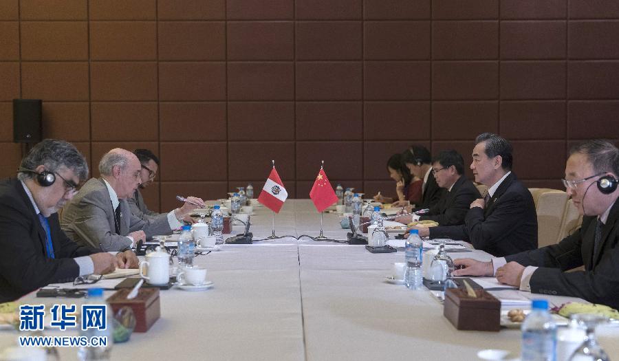 11月11日,外交部長王毅在越南峴港應約會見秘魯外長盧納。 新華社記者費茂華 攝