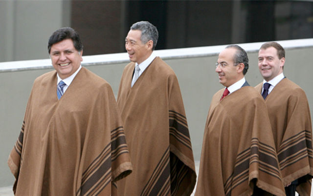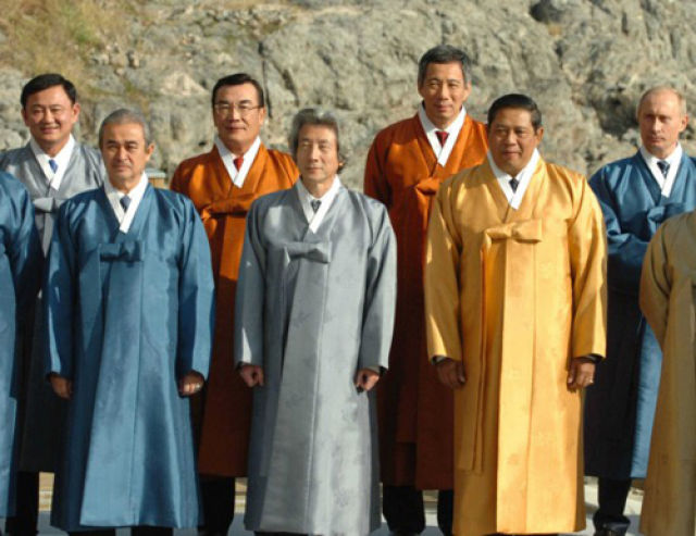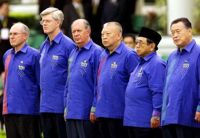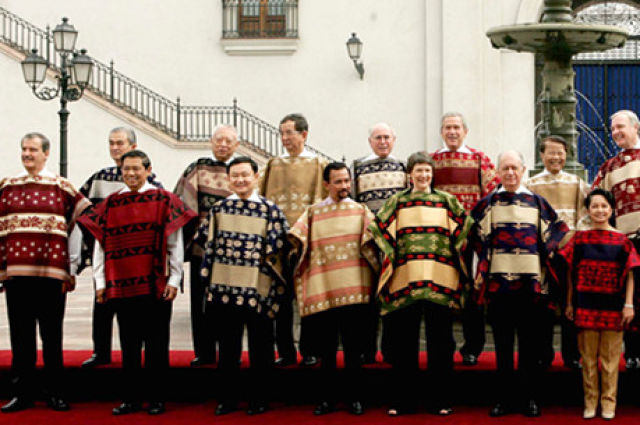 1993年,首屆APEC領(lǐng)導(dǎo)人非正式會議在美國西雅圖召開。各經(jīng)濟體領(lǐng)導(dǎo)人不帶助手和隨身翻譯,不穿正裝。從那以后,在一年一度的APEC領(lǐng)導(dǎo)人非正式會議期間,東道主通常會為與會領(lǐng)導(dǎo)人提供特別制作的當(dāng)?shù)貍鹘y(tǒng)服裝,在宣介東道主傳統(tǒng)文化的同時,也體現(xiàn)“亞太大家庭”的理念。