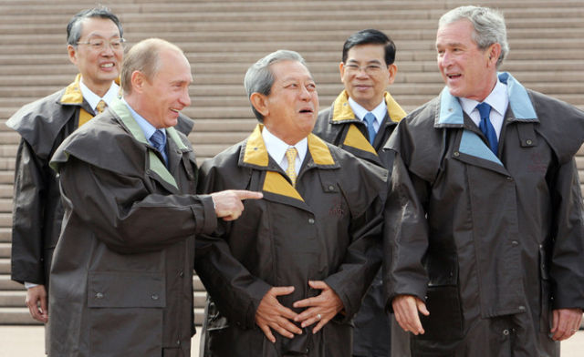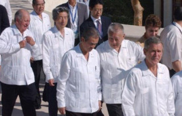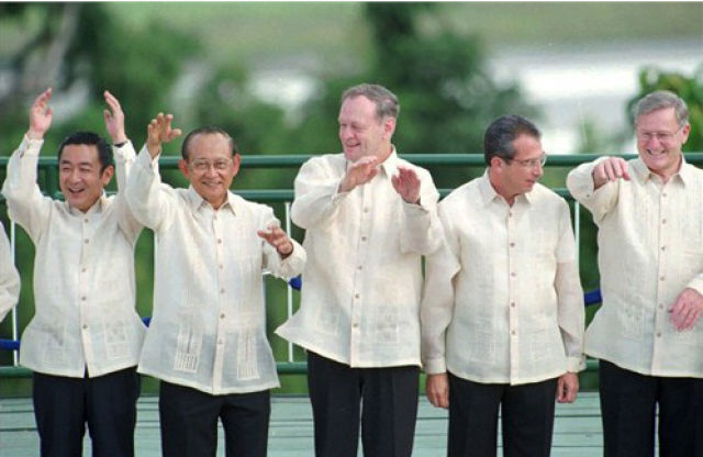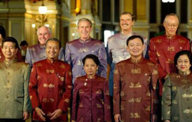 時任印尼總統(tǒng)蘇哈托贈送每位領(lǐng)導(dǎo)人一件巴提克——一種蠟染印花襯衣。