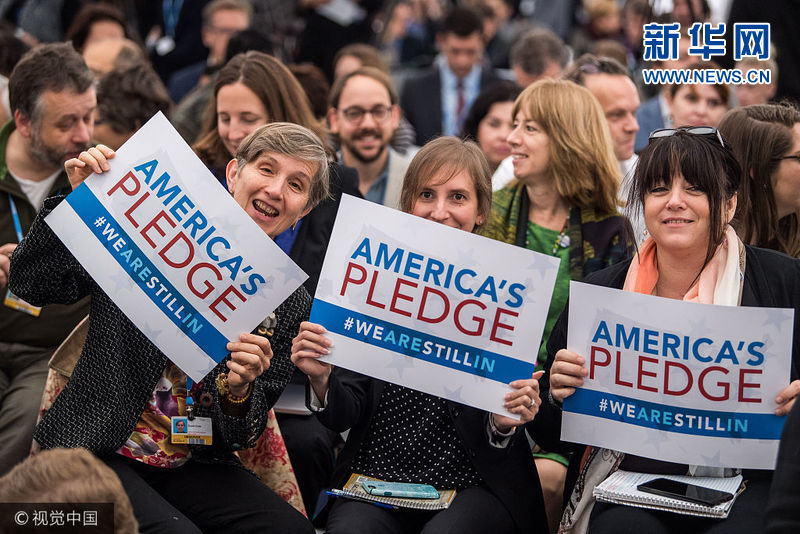當(dāng)?shù)貢r(shí)間2017年11月11日,德國(guó)波恩,波恩氣候大會(huì)召開,“美國(guó)會(huì)館”內(nèi)景。雖然美國(guó)宣布退出了《巴黎協(xié)定》,但美國(guó)氣候談判代表仍出席了波恩的會(huì)議。美國(guó)除聯(lián)邦外的各級(jí)政府均派代表參加波恩會(huì)議,且主要目的就是表明他們?nèi)詫⒅铝τ趦冬F(xiàn)美國(guó)在巴黎做出的承諾。在美國(guó)國(guó)內(nèi),成千上萬的市長(zhǎng)、州長(zhǎng)、部落首領(lǐng)、企業(yè)高管以及普通美國(guó)人都在努力降低溫室氣體排放。這個(gè)名為“我們?nèi)栽趫?jiān)守(We Are Still In)”的聯(lián)盟的成員代表了美國(guó)一半以上的人口以及54%的經(jīng)濟(jì)產(chǎn)出。“我們?nèi)栽趫?jiān)守”( We Are Still In)、“美國(guó)氣候聯(lián)盟”、“氣候市長(zhǎng)”(Climate Mayors)和其它諸多計(jì)劃向全世界傳遞了這樣一個(gè)信息,即美國(guó)仍然有很多人正致力于擁有宏偉目標(biāo)的氣候行動(dòng)之中,而“美國(guó)的承諾”(America’s Pledge)正在尋求如何量化并傳播這些承諾。(圖片來源:視覺中國(guó))