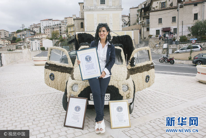 當(dāng)?shù)貢r間2017年10月22日,意大利帕杜拉,一位意大利發(fā)型設(shè)計師Maria Lucia Mugno花費(fèi)了超過8萬英鎊來裝飾自己的車子,這讓她獲得了吉尼斯世界紀(jì)錄。這項工程需要150個小時來完成,用于裝飾的頭發(fā)總重量達(dá)到100公斤。(圖片來源:視覺中國)