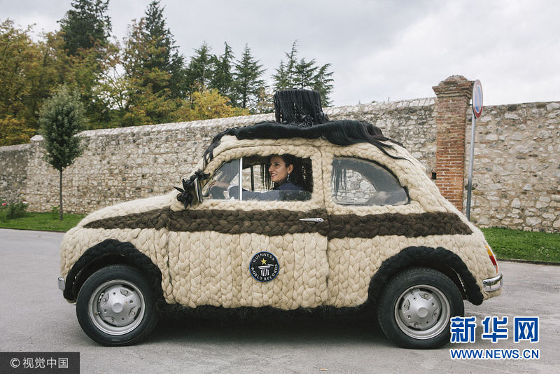意大利帕杜拉,一位意大利發型設計師Maria Lucia Mugno花費了超過8萬英鎊來裝飾自己的車子,這讓她獲得了吉尼斯世界紀錄。這項工程需要150個小時來完成,用于裝飾的頭發總重量達到100公斤。(圖片來源:視覺中國)