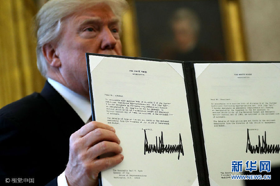 當地時間22日,美國華盛頓,美國總統特朗普在白宮的橢圓形辦公室簽署1.5萬億美元稅改法案,此乃美國最近逾30年來最大規模減稅行動。(圖片來源:視覺中國)