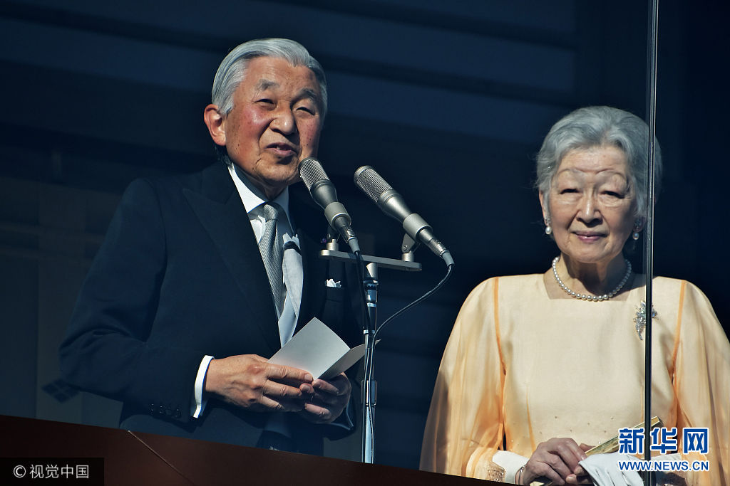 當地時間2017年12月23日,日本東京,日本明仁天皇慶祝84歲生日,在皇宮的陽臺上向祝福者揮手致意。(圖片來源:視覺中國)